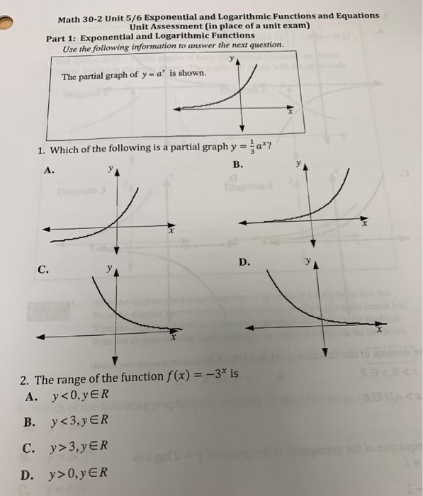 Solved Math 302 Unit 5/6 Exponential and Logarithmic - What is the exponential form of the logarithmic equation? Observe the shape of the scatter diagram to determine whether the data is best described by. Which ordered pairs lie on the graph of the exponential function f(x)=128(0.5)^x ? Round the answer to the nearest ten. Algebra 2 | semester 1 unit 6 practice test | exponential and logarithmic function unit. You should also read this: Quiktrip Math Test