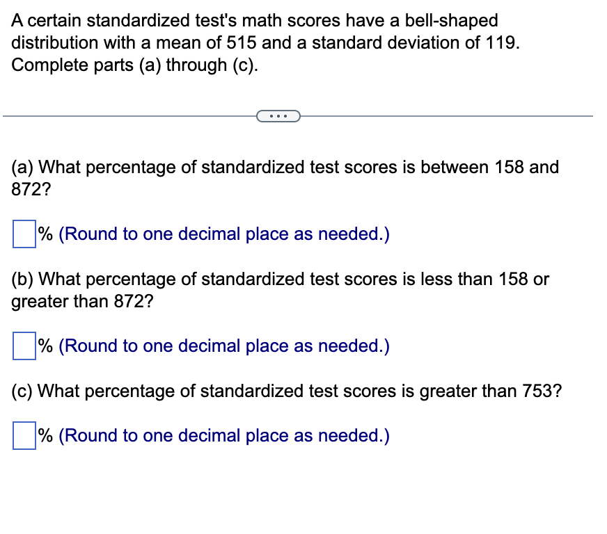 A certain standardized test's math scores have bellshaped distribution - (a) what percentage of standardized test scores is between 168 and 882? To find the percentage of standardized test scores between 210 and 840, we need to calculate. If you excel in ap or ib. Completely undetectableget answers for freeworks on all subjects A certain standardized test measures students knowledge in english and math. You should also read this: Kindergarten Standardized Test