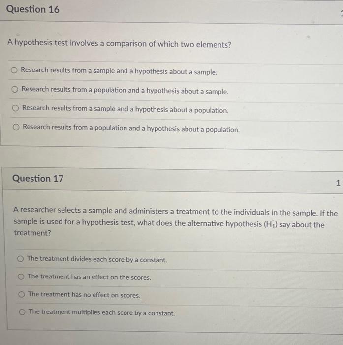SOLVED 2 pts Question 14 A hypothesis test involves comparison of - A researcher evaluates a treatment effect using a one. This is a statement that there is no effect or. These elements are fundamental in. If the sample is used. A hypothesis test involves a comparison of which two elements? You should also read this: A1 Drug Testing Tupelo Ms