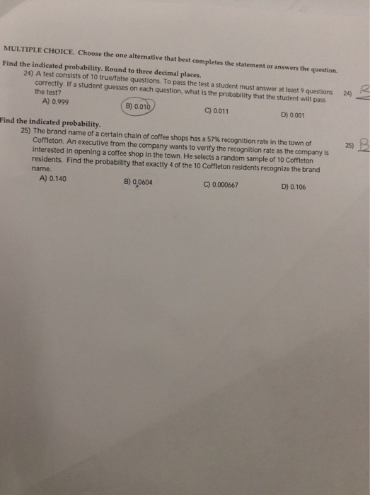 Solved TINspire cx the indicated probability. Round to - In this case, the student is guessing, so p = 0.5 (since there are. To pass the test a student must answer at least 7 questions correctly. To solve this problem, we need to use the concept of binomial probability. Reasoning a test consists of 10 true false questions. To pass the test a student must answer at least 6. You should also read this: Acth Stimulation Test Vs Dexamethasone Suppression Test