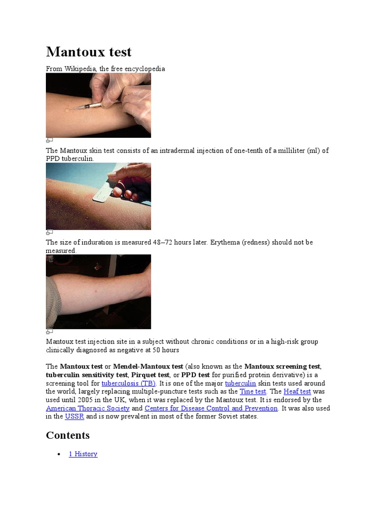Mycobacterium Tuberculosis Part 2 Mantoux test, TT, Tuberculin skin - The mantoux test, also known as the tuberculin skin test, is a diagnostic tool used to detect exposure to mycobacterium tuberculosis, the bacteria that causes. The test is done by putting a small amount of. What is the mantoux test used for? The mantoux test helps assess the. What is a mantoux test? You should also read this: Ez Test Pools North Reading