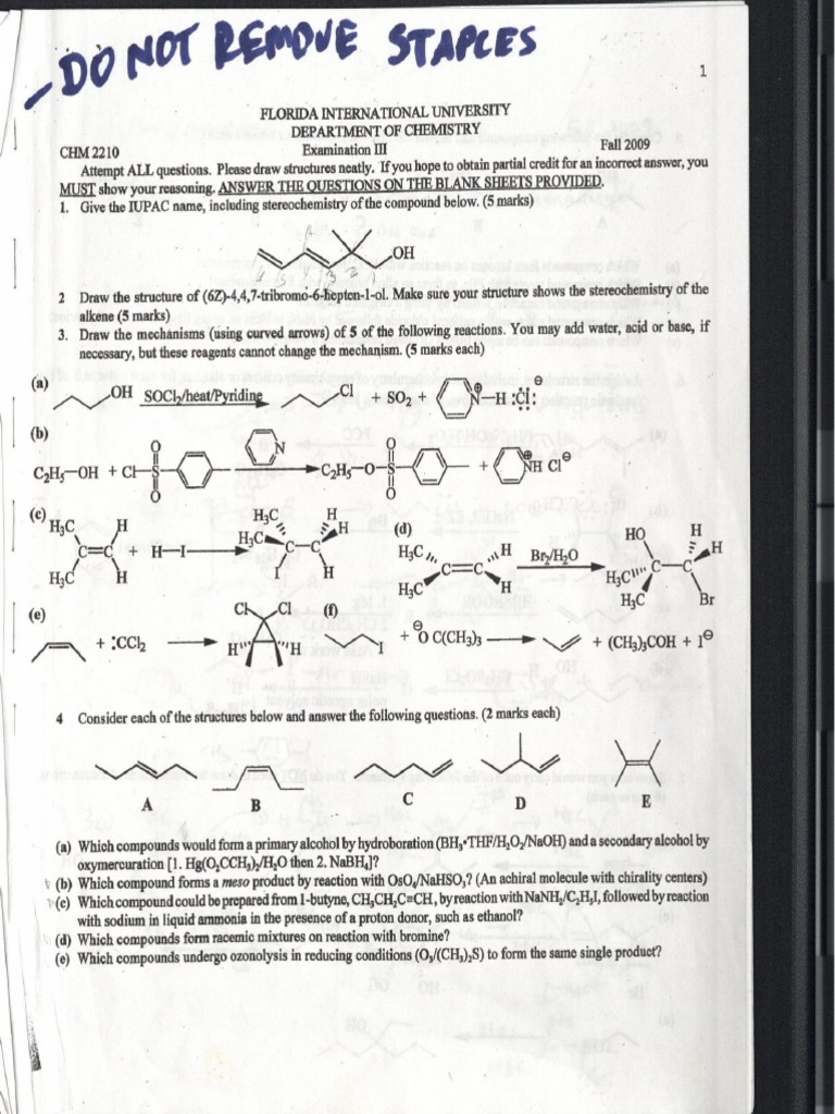 Organic Chemistry Exam PDF - Bh3 thf/2.h2o2, naoh, halogenation br2 and more. Acs practice test 1 acids & bases: Sq 6 and 10 (p. Study with quizlet and memorize flashcards containing terms like b, e, d and more. The document provides sample questions from an acs examination guide covering various topics in organic chemistry. You should also read this: House Tree Person Test Interpretation
