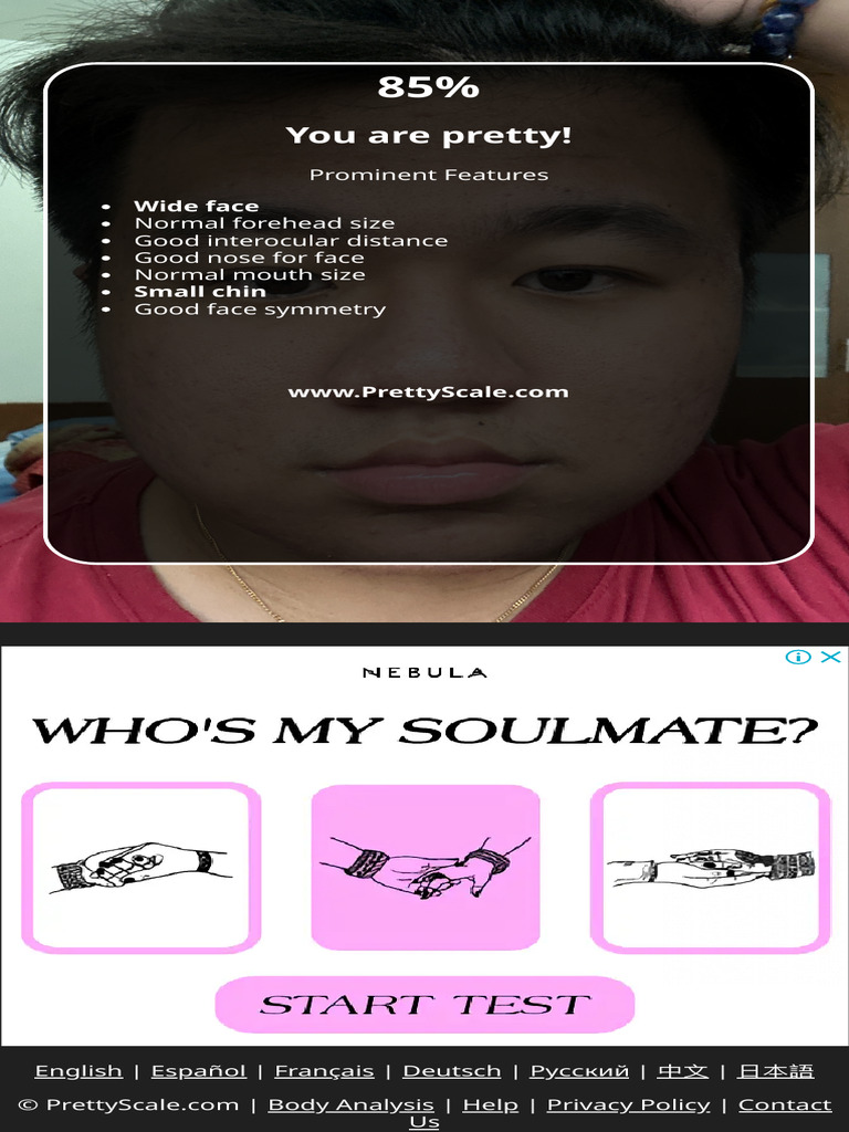 Am I Beautiful Or Ugly? Quiz - Powered by ai facial analysis to attractiveness test, evaluate face shape and skin analysis, prettyscale ai can objectively evaluate your face Have you ever wondered if you fit society's mold of what is beautiful? Beauty is on the inside, but take this test to find out if the outside represents your true inside, looks aren't everything, you are still beautiful. You should also read this: Hoffa's Fat Pad Test