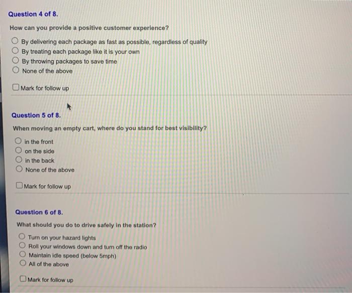 Solved Question 1 of 8. Before you enter the station, what - You won't need the answers as they are self explainable. What are the 3 keys to be a smart driver? How much longer is to break with road. This post provides exhaustive information and tips on the amazon delivery driver assessment test, including practice questions and answers to help you perform better in the test. While operating your vehicle, always. You should also read this: Emissions Testing Rocky Hill Ct
