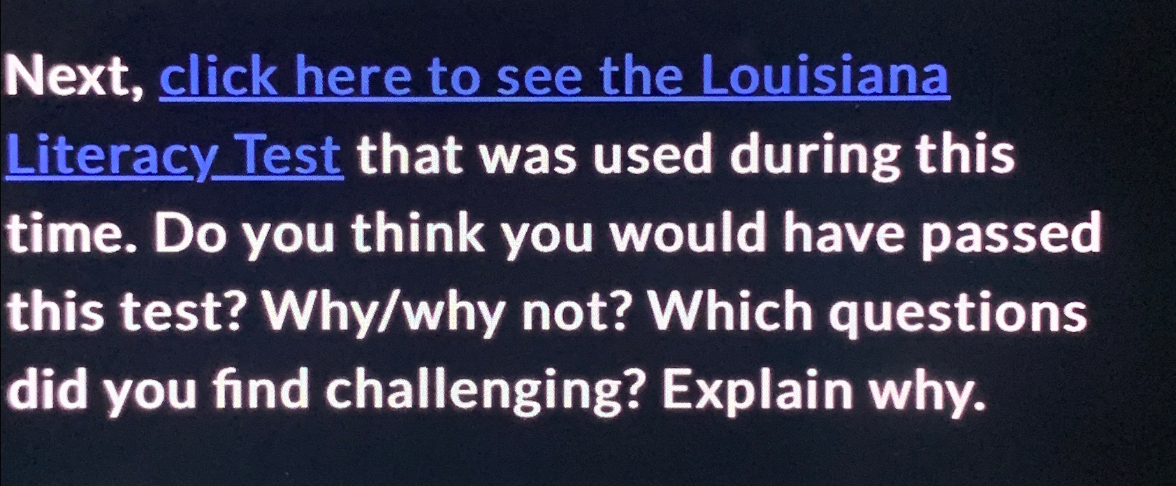 Solved Next, click here to see the Louisiana Literacy Test - Civil rights movement, southern freedom movement, voting rights, voting rights, literacy test, louisiana, created. The following test was used in louisiana in the late 1950s. Do what you are told to do in each statement, nothing more,. Some have questioned the authenticity of this particular exam (louisiana literacy test). Discover the answers and insights on the state of louisiana literacy. You should also read this: Test Propionate Vs Cypionate