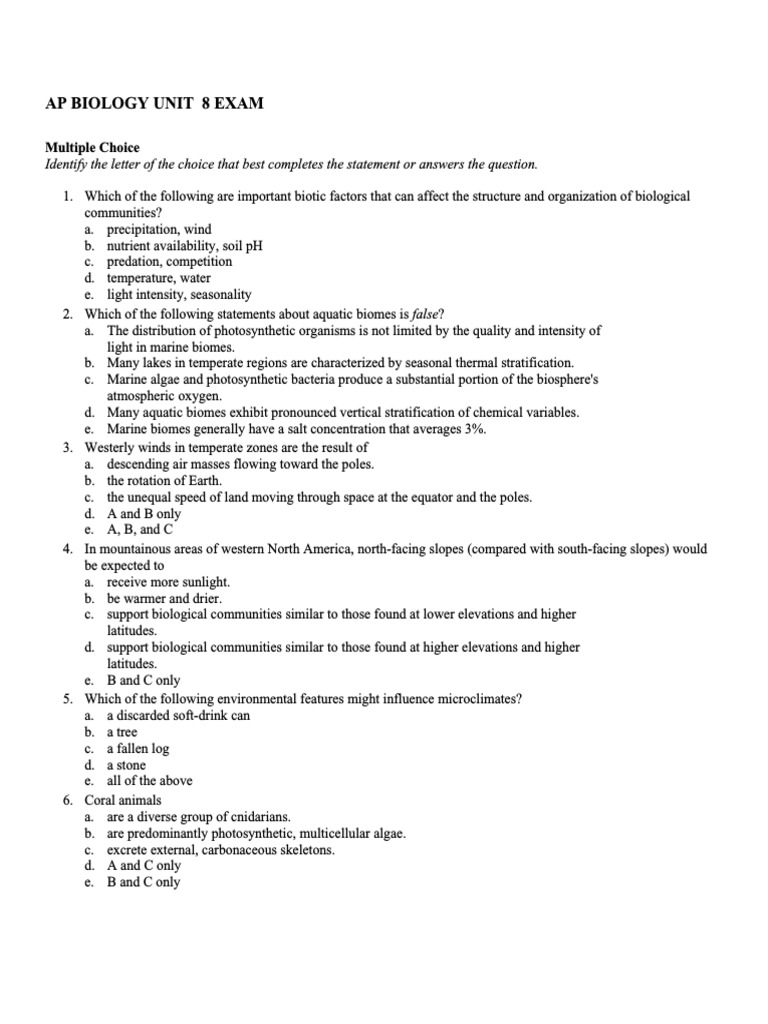 SOLUTION Ap biology unit 8 exam 2023 Studypool - Taken directly from ap classroom, answers based of video content and key takeaways for each. Ecology quiz for 10th grade students. Study with quizlet and memorize flashcards containing terms like darwin's principles,. Find other quizzes for biology and. Prepare for teststaught by expertseasy to learnover 30 million users You should also read this: How To Test For Water In Gasoline