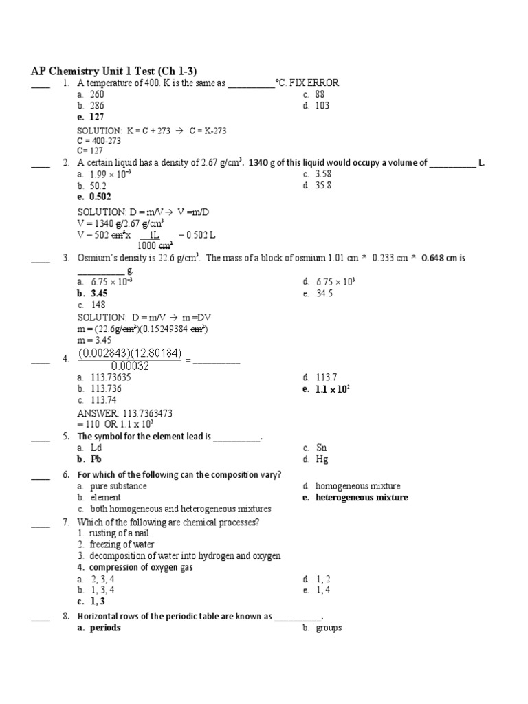 Ap Chemistry Unit 1 Test Pdf - In your volume) what happens when filtering separate mixtures based on differences. On studocu you find all the lecture notes, summaries and study guides you need to pass your exams with better grades. Each of the questions or incomplete statements below is followed by. To dig into this year’s results, i teamed up with dr. Which subject are you taking? You should also read this: Std Testing Myrtle Beach Sc