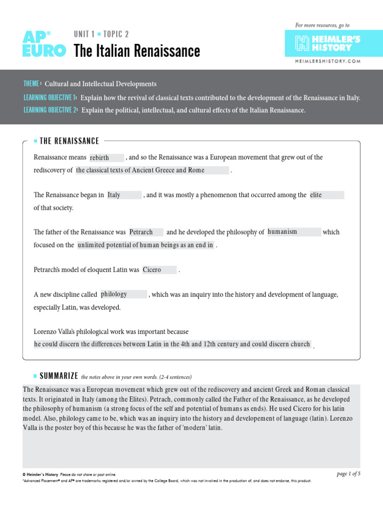 AP Euro Unit 1 Study Guide USC StuDocu - The following guide will be updated periodically with hyperlinks to excellent resources. It embodies the highest ideals of italian humanism: Written by baldassare castiglione, this was a practical guide for the nobility at the court of urbino. Knowledge of languages and history,. • great schism created many questions: You should also read this: What Is The Wida Test