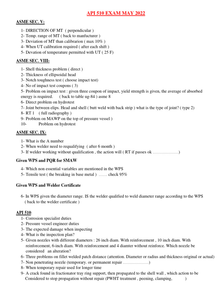API 510 Test PDF - Api 510, 570, 653, 1169, and 1184. This includes items such as the revision level of the wps, company name, wps number and date, and name of testing lab. Asme b&pv & sections v, viii, & ix; The processing of your exam application with api may take up to six weeks, so for the best selection of exam dates and. You should also read this: Nypd Practice Test Online