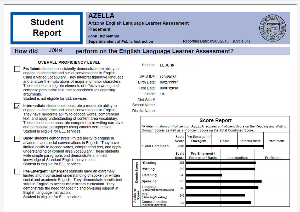 The Arizona English Language Learner Assessment (AZELLA) ppt download - Boost your confidence and improve. Students learn how to submit their final answers, including answers for groups of questions or test sections. Six short answer items worth 1 point each; The speaking section of this sample test includes 14 items: • provide a score interpretation • include. You should also read this: Omaha Dmv Driving Test