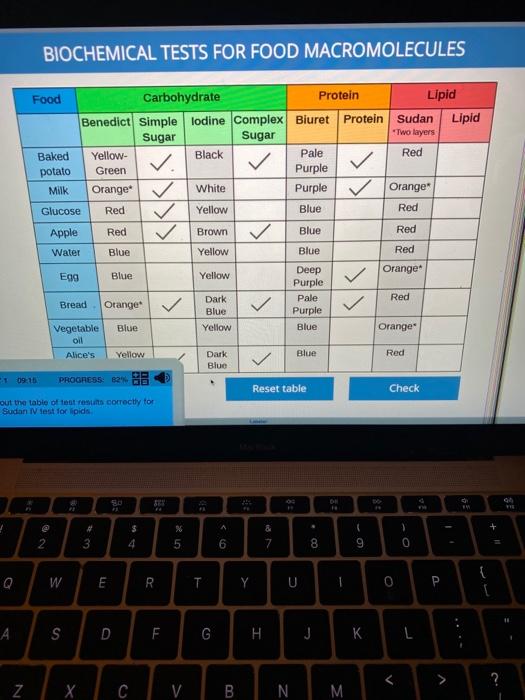 Solved BIOCHEMICAL TESTS FOR FOOD MACROMOLECULES Food - Carbohydrates, proteins, fats, and nucleic acids. Students will investigate the presence of carbohydrates, proteins, and lipids in various food samples using standard. Explain the concepts of positive and negative controls in testing hypotheses. Welcome to labster’s introduction to food macromolecules simulation! Explore different methods and techniques used in. You should also read this: Similarity Unit Test Part 1