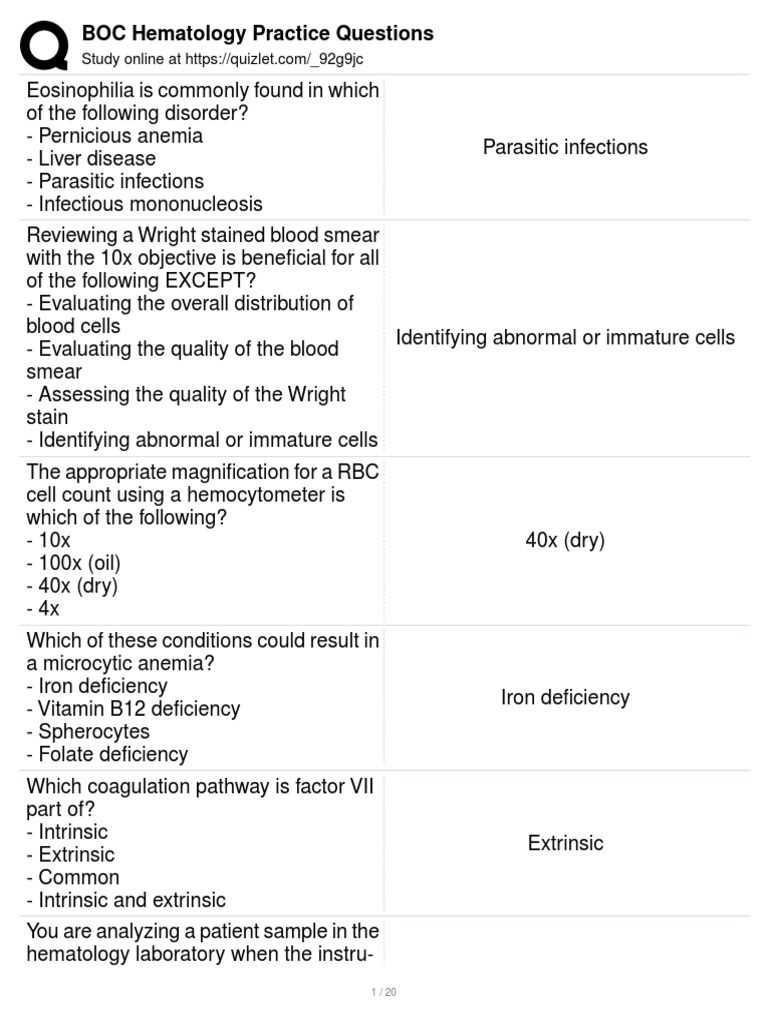BOC Hematology Practice Questions Study Guide PDF Platelet - Examination questions, which are related to the subtest areas outlined below, may be both theoretical and/or procedural. A comprehensive set of questions/definitions from all aspects of the athletic training curriculum It also tests understanding of professional. Through two mock exams, the study guide for the boc exam can help identify your strong and weak knowledge areas so you can better. You should also read this: Nextcare Test Results Online
