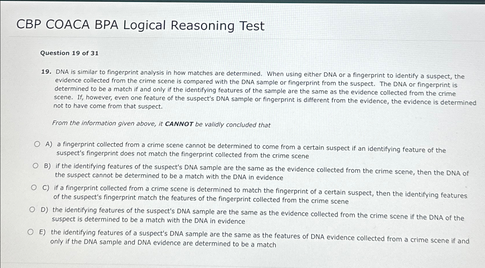 Solved CBP COACA BPA Logical Reasoning TestQuestion 19 of - Discover what to expect and how to excel in this critical examination. Get familiar with the exam format and increase your confidence. Tested individual (written test) demonstrate and apply fundamental knowledge of the banking industry. Bpa business, law, and ethics [100 item/s] take a practice test / quiz | study flashcards | challenge a friend Prepare for the bpa (border. You should also read this: Does Idaho Have Emissions Testing