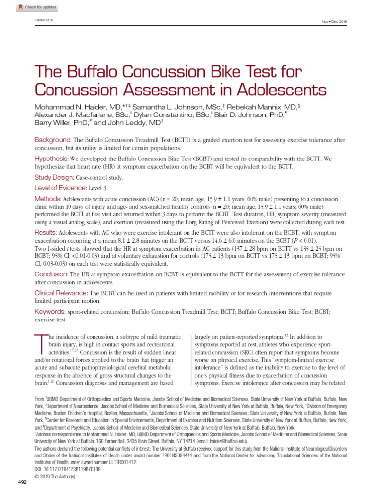 Haider 2019 Buffalo concussion Bike Test PDF Concussion Heart Rate - Mark heisig explains what this is, and how it is used in treatment f. The buffalo concussion treadmill test (bctt) is a graded exertion test for assessing exercise tolerance after concussion, but its utility is limited for certain populations. The buffalo concussion treadmill test is a vital tool in concussion management, head injury diagnosis, and brain function evaluation. During the. You should also read this: Can Men Get Hpv Test