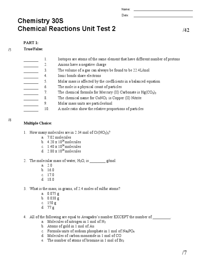Solved éa ctiononit test Chemical Formulas/Chemical ReactionUnit - Take a simple chemical reactions unit test to assess your knowledge and understanding of basic chemical reactions. Learn about the different types of reactions, balancing equations, and predicting products. It shows that no atoms have been gained or lost during the reaction. How does a balanced chemical equation demonstrate the law of conservation of mass? In an equation representing a. You should also read this: How Many Questions Are On The Illinois Driving Test