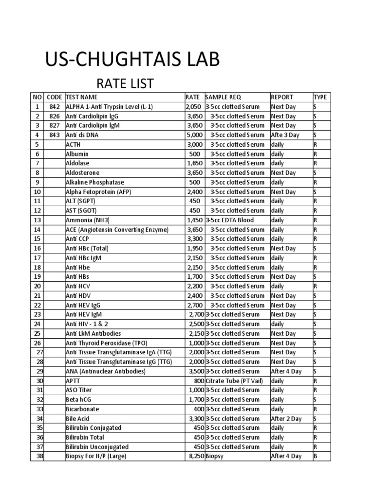 Us Chughtais Lab Rate List PDF Blood Plasma Serum (Blood) - Book your lab tests from chughtai lab via marham and avail 20% discount. To help you make informed decisions, we’ve compiled a detailed price list covering a wide range of tests offered at chughtai lab. Here are the current prices of chughtai lab in lahore, karachi, islamabad, multan, rawalpindi, quetta, and other cities of. At chughtai lab radiology, we offer. You should also read this: What Is The Means Test For Chapter 7