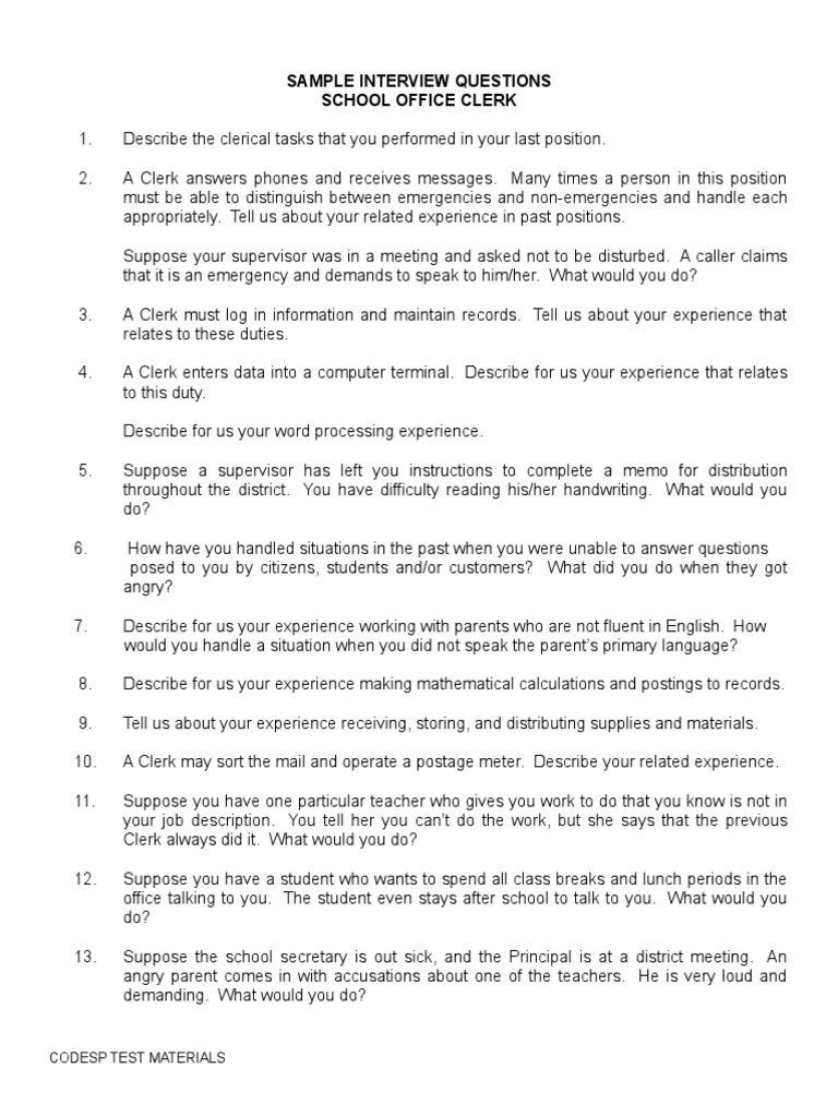 Sample Interview Questions School Office Clerk Codesp Test Materials - Links to free test taking practice sites are available to the public from the codesp website. Practice for codesp clerical exams with our free questions and answers. Select one answer for each question and select grade this section. you can find this button at the bottom of the drivers license. Improve candidate quality, hire more. Our codesp practice test 2025. You should also read this: Unit 3 Ap Psych Practice Test