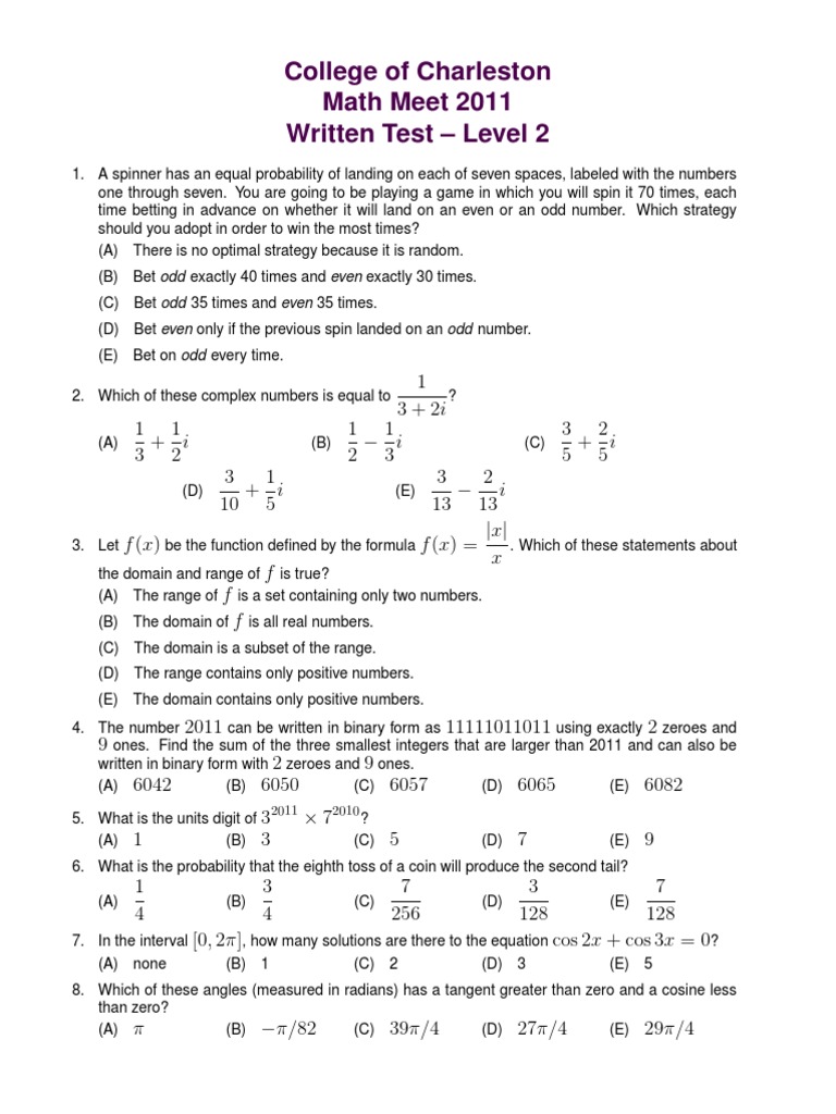 Math Placement Tests PDF Test (Assessment) Qualifications - Math 480 topics in applied mathematics (3). Data has shown students have the best chance of succeeding in their next course when they take this test with no other resources so as to make. You will see your score and the explanations when you have. What are college of charleston's average sat scores and gpa? Remember to insert a place. You should also read this: Over The Counter Parasite Test