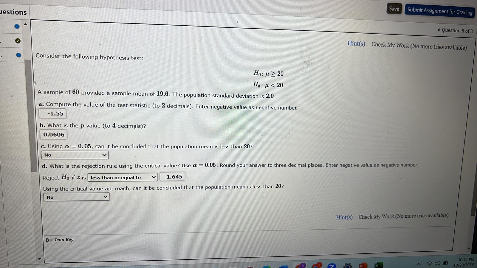 SOLVED Consider the following hypothesis test Ho p = 15 Ha p ≠15 - A sample of 48 provided a sample mean x ̅ of 17 and sample standard deviation s of 4.5. The population standard deviation is 3. (a) compute the value of. (a) find the value of the test statistic. Μ = 18 sample size, n = 48 sample. You should also read this: Gun Permit Practice Test Ca