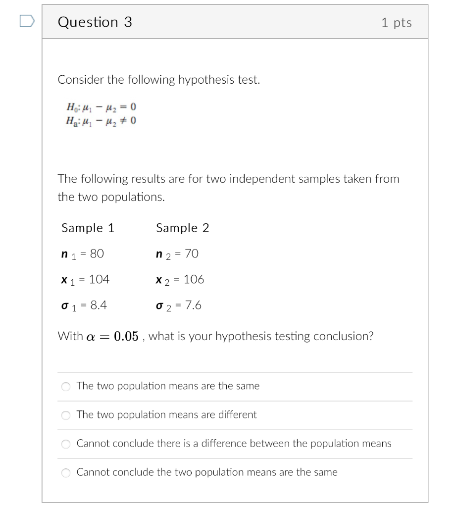 Consider the following hypothesis test l H0 StudyX - Consider the following hypothesis test. Μ = 18 sample size, n = 48 sample. Find the value of the. Conduct the following test of hypothesis using the 0.10 significance level. Consider the following hypothesis test. You should also read this: Alternator Testing With Multimeter