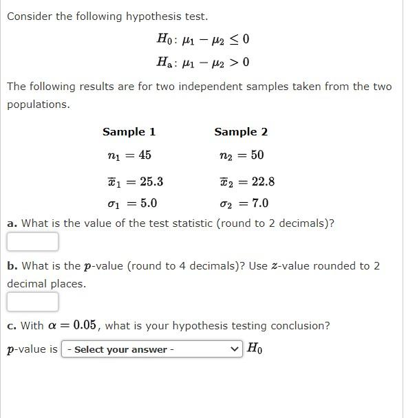 Solved Consider the following hypothesis test. - Find the value of the. Compute the value of test. >25 a sample of 40 provided a sample mean of 26.4. Consider the following hypothesis test. The hypotheses are as follows: You should also read this: Priority One Drug Testing