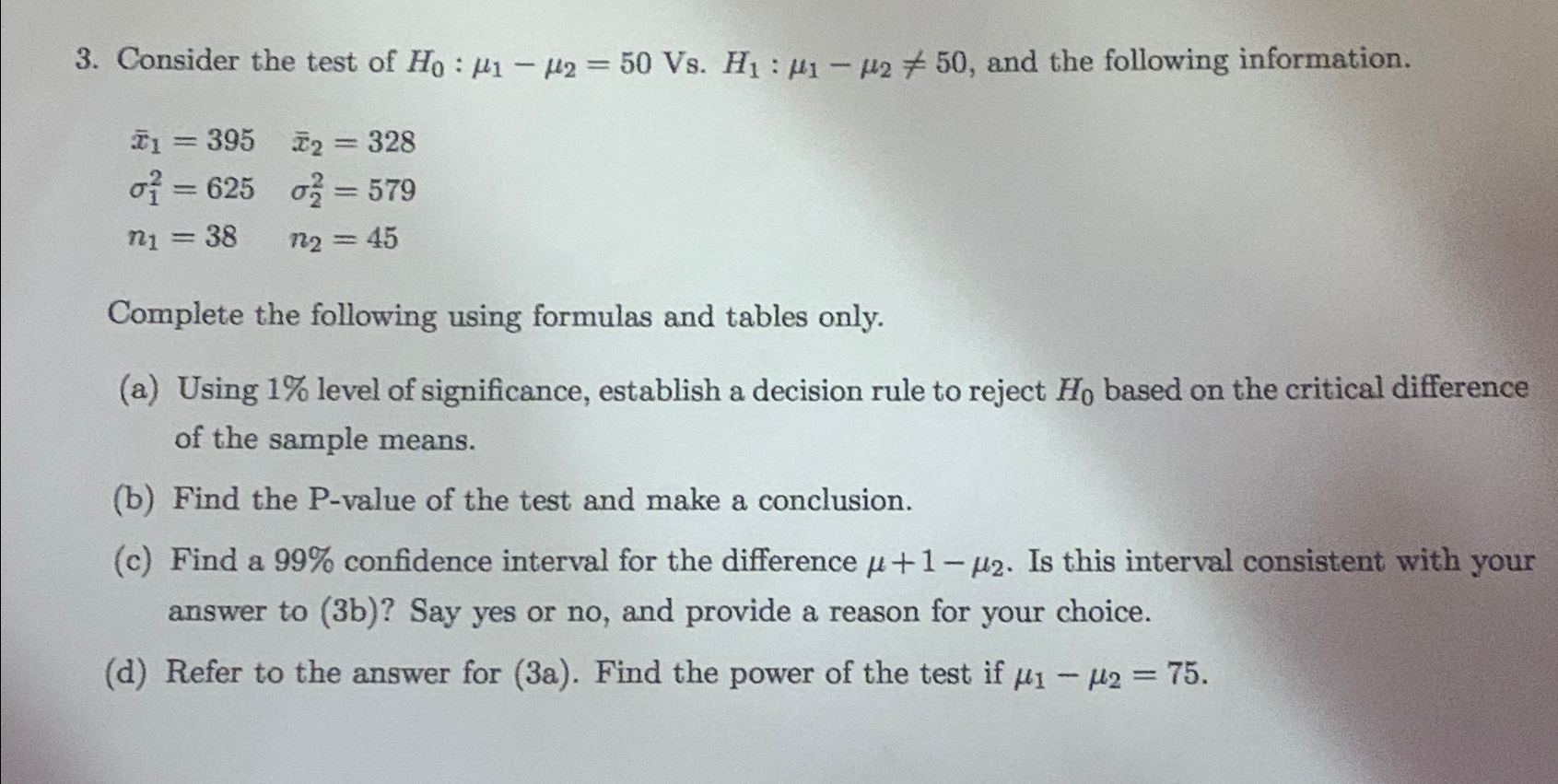 Solved Consider the test of H0μ1μ2=50Vs.H1μ1μ2≠50, and - 10.5.3) consider the hypothesis test h0: Answer to consider a test of h0:μ1=μ2h_0: 𝜇 < 50a sample of 36 is used. 𝜇1 − 𝜇2 ≠ 0the following results are from independent samples taken from two populations.sample 1sample 2n1 = 35n2 = 40x1 =. With test statistics and sample size. You should also read this: Test For Vitamin Deficiencies