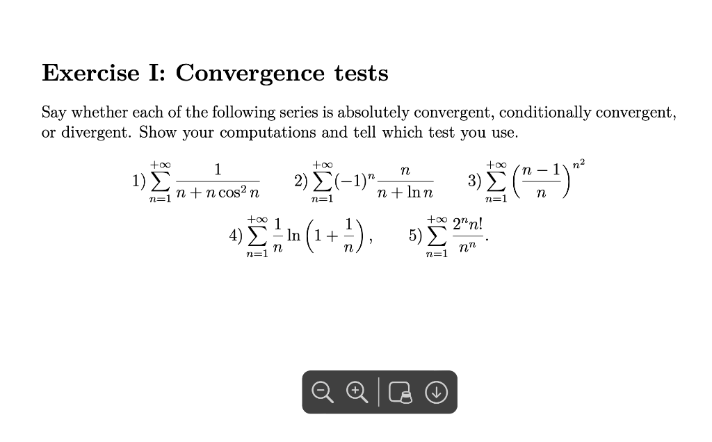Solved Exercise I Convergence tests Say whether each of the - In our series blogs, we’ve gone over four types of series, geometric, p, alternating, and telescoping, and their convergence tests. In this blog post, we will discuss another infinite series, the telescoping series, and how to determine if it converges using the telescoping series test. ∑k=2∞ sin(π 2 + kπ) k−−√ ln(k) ∑ k = 2 ∞ sin (π 2. You should also read this: Grand Highlander Crash Test