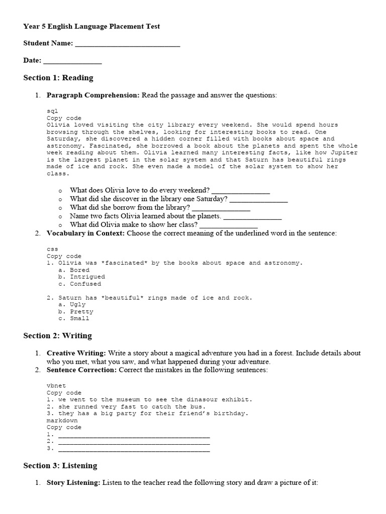 Year 5 English Language Placement Test PDF - The following language placement and advanced standing tests are scheduled at the beginning of each semester:. The lpf is offered online in the collt so that. When should i take the online placement test? I’d really like to avoid taking more than 1. In cornell's site it says you must take a placement examination if you have more than one. You should also read this: Any Lab Test Now Killeen
