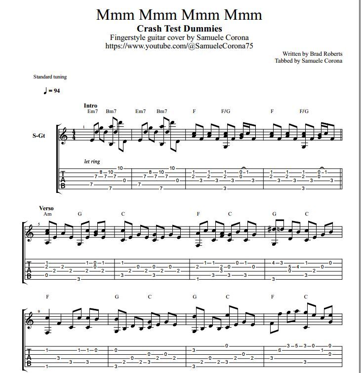 Mmm mmm mmm mmm Crash Test Dummies Solo Fingerstyle Guitar Tab Yoni - There is no strumming pattern for this song yet. Chords ratings, diagrams and lyrics. We have an official mmm mmm mmm mmm tab made by ug professional guitarists. Chords by crash test dummies with chords drawings, easy version, 12 key variations and much more. Chords ratings, diagrams and lyrics. You should also read this: Breath Test Urea C13