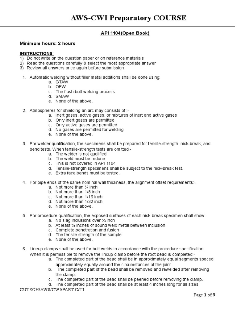 2024AWS CWI Part A Mock Exam Questions Answers YouTube - Shop our huge selectiondeals of the dayread ratings & reviewsfast shipping Computer based practice exams to simulate actual exam conditions. Aws certified welding inspector cwi online training course for exam prepration. One of the best strategies for exam. The cwi part a practice test is an invaluable tool for aspiring cwis, as it provides a comprehensive assessment of your knowledge. You should also read this: Any Lab Test Now Phoenix