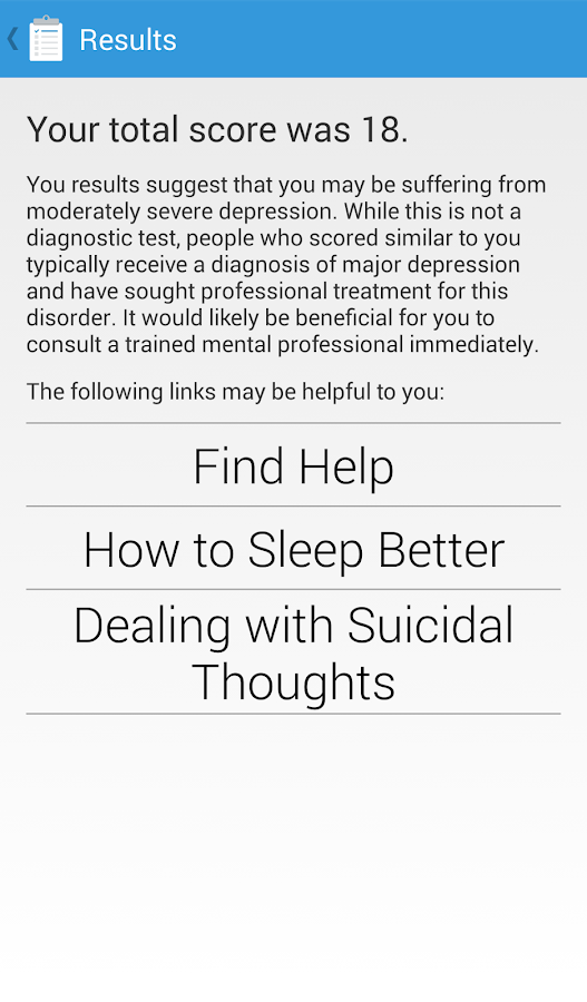 Depression Test Android Apps on Google Play - It helps identify the presence and severity of depressive symptoms, allowing you to gain a better. However, if you want first to check for early warning signs of depression in the privacy of your own home, the brainmanager team designed an affordable depression test that. It allows you to assess your depressive symptoms and gain initial insights into your mental. You should also read this: Any Test Labs