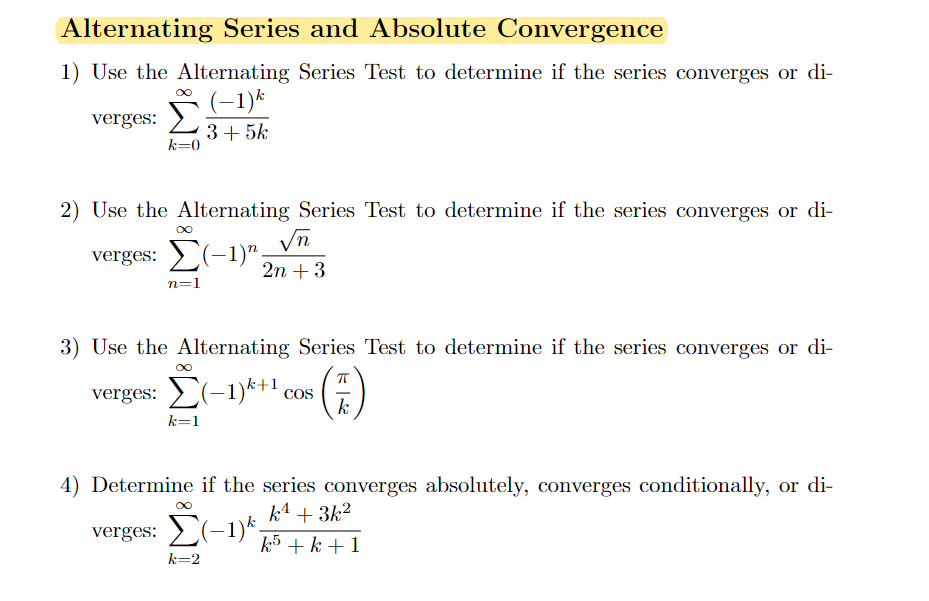 Alternating Series /Absolute Convergence/conditional convergence - Explain the meaning of absolute convergence and. Theorem 8.5.9 tells us the series converges (which we could also determine using the alternating series test). In mathematical analysis, the alternating series test proves that an alternating series is convergent when its terms decrease monotonically in absolute value and approach zero in the limit. Estimate the sum of an alternating series. This,. You should also read this: Maintenance Supervisor's Course Test 1
