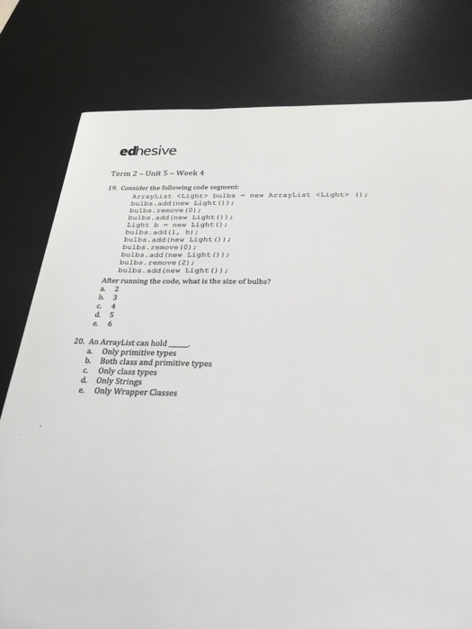 [FREE] 4.11 lesson practice edhesive questions 4 and 5 - Immediately available after payment both online and in pdf no strings attached Solutions to the 2020 ap csa edhesive course. Quiz yourself with questions and answers for edhesive chapter 4 test, so you can be ready for test day. Ask the user to input a number less than 100. Need answers for a code practice? You should also read this: Recoverytrek Drug Testing Options