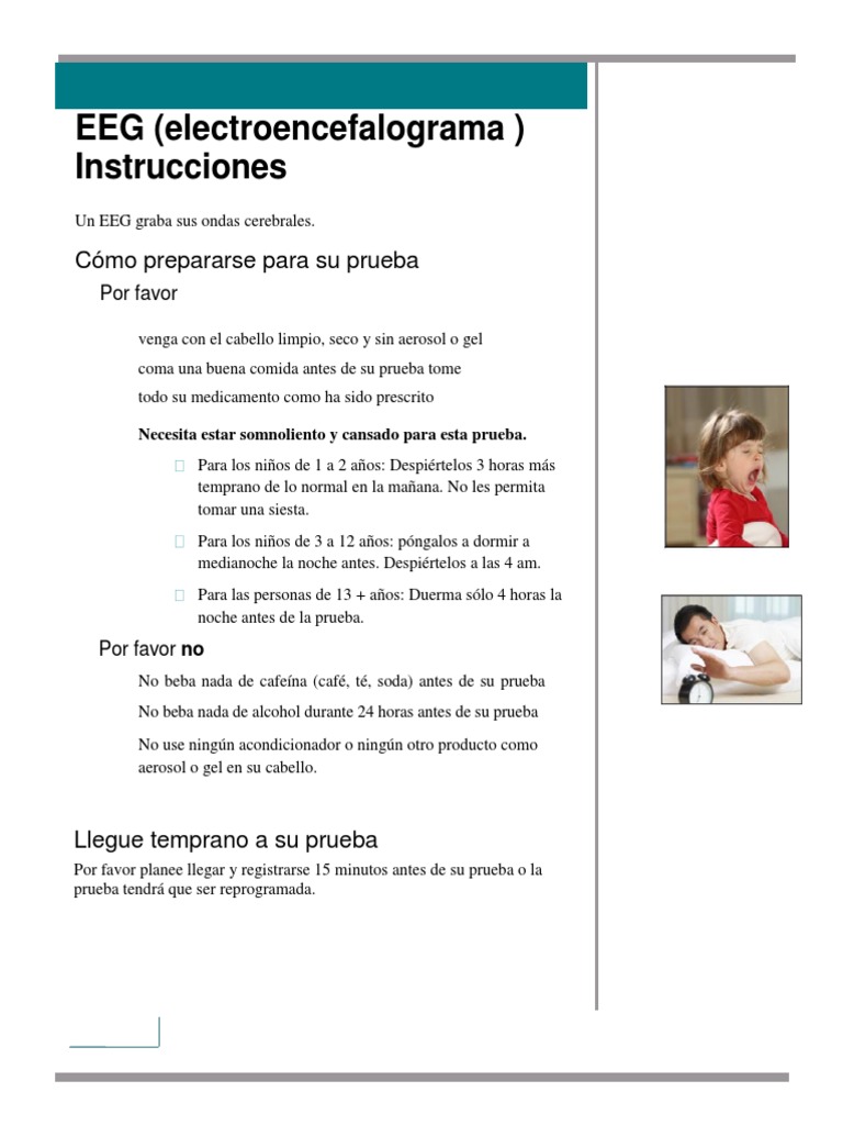 English & Spanish Routine EEG Sample Patient Instructions - Un electroencefalograma (eeg) es una prueba que examina cómo funciona el cerebro midiendo las ondas cerebrales. El electroencefalograma es una prueba que permite detectar anomalías en las ondas cerebrales o en la actividad eléctrica del encéfalo. Un electroencefalograma (eeg) es un examen que sirve para medir la actividad eléctrica del cerebro. ¿qué tengo que preparar antes del eeg? Su utilidad. You should also read this: Binaural Testing Medical Term
