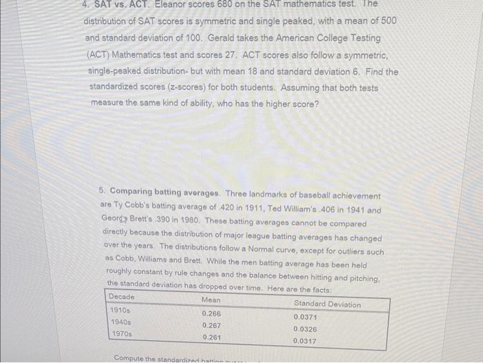 Solved 4. SAT vs. ACT. Eleanor scores 680 on the SAT - The distribution of sat math scores in recent years has been normal with mean 591 and standard deviation 100. The distribution of sat math scores in recent years has been normal with mean 527 and standard deviation 118. The distribution of sat math scores in recent years has been normal with mean 555 and standard deviation 79. The distribution of. You should also read this: Pax Practice Test