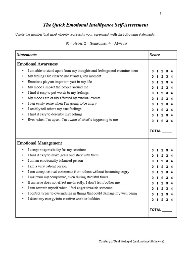 Emotional Intelligence Test & Example Free PDF Download - Boosting emotional awareness isn’t about memorizing feelings flashcards; Personalized reportseasy, fast & securesimplified procedurediscover personality type This assessment is a direct assessment that can be administered to learners between the ages of 7 and 12. In contrast, a psychological evaluation is a comprehensive. Emotional intelligence test is a method used to evaluate an individual’s ability to recognize, understand, and manage. You should also read this: Jobs With No Drug Test