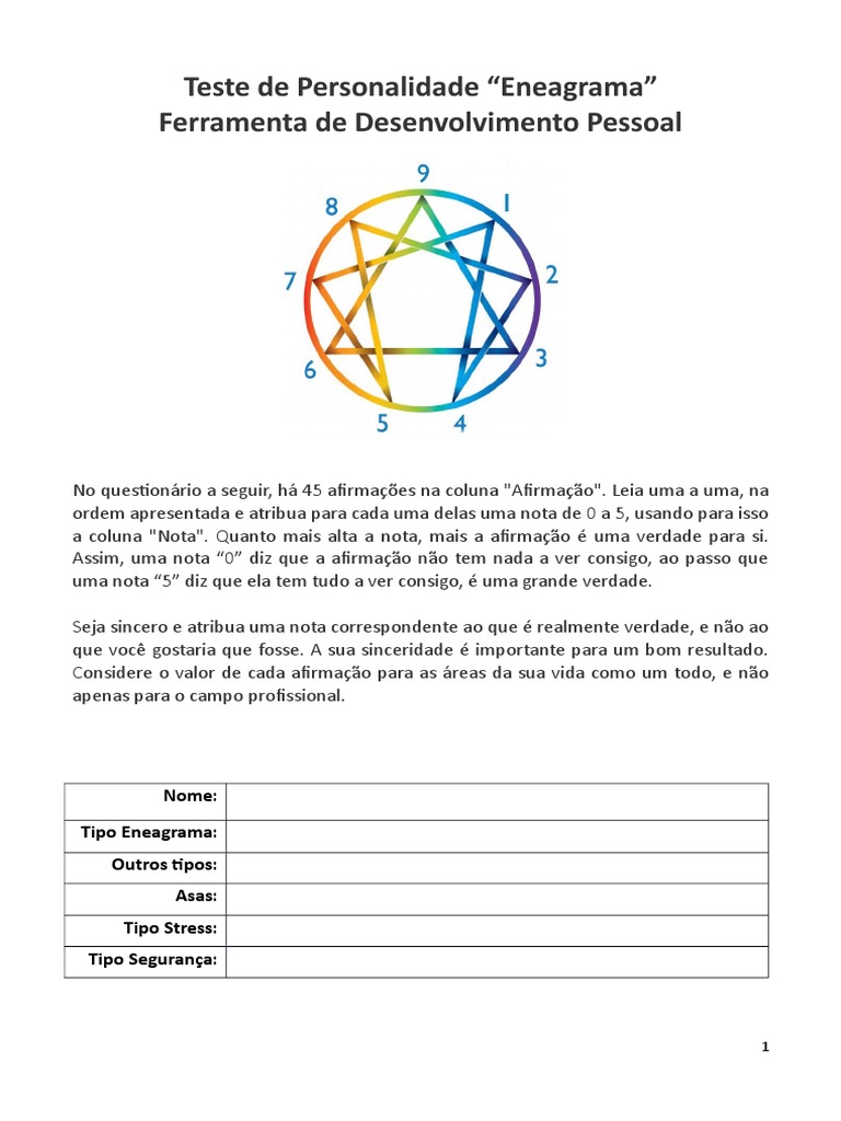 Eneagrama Teste Completo PT PDF Eneagrama de personalidade Humano - Descubre tu tipo de personalidad con el test del eneagrama gratuito. Para descubrir tu tipo de personalidad y explorar cómo el eneagrama puede ayudarte en tu desarrollo personal y profesional, hemos preparado un test. El eneagrama es un sistema profundo, que desentraña quién eres en lo más hondo, no es un jueguecito para pasar el rato. Entonces, si está interesado. You should also read this: Visual Evoked Potential Eye Test