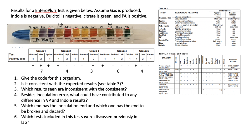 Solved Table no. 2 Results for a EnteroPluri Test is given - Using the enterotube®ii inoculated with a colony from the macconkey agar above, identify the bacterium causing the infection. If the first number of the five digit code is 0, what does this indicate? What bacterial genera are likely to give this result? Observe the change in colour of culture media in the different sectors and interpret results using the table. You should also read this: Cardiochek Test Strips