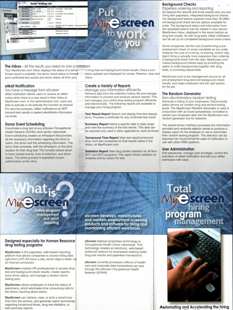 Escreen Brochure Background Check Drug Test - With escreen's patented technology, you can get negative. Learn about escreen's products, services, mission and history. Fcra compliantbuild a fairer futurestaffingcomprehensive checks Paperless chain of custody forms; Find answers to common questions about test selection, clinic locations, results. You should also read this: Positive Seidel Test
