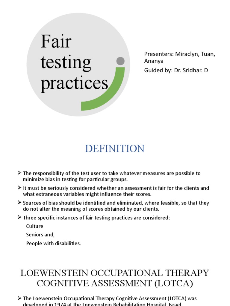 Fair Testing Practices Ananya PDF Occupational Therapy Perception - It measures the skills necessary to communicate effectively with coworkers at all levels and with external business contacts. It stands for facts, access, impacts, and respect. The fair test helps you examine how well you have provided the facts; Fair stands for facts, access, impacts, and respect. To foster trust in verbal and written communications, apply the fair test, as. You should also read this: Backflow Testing Sarasota