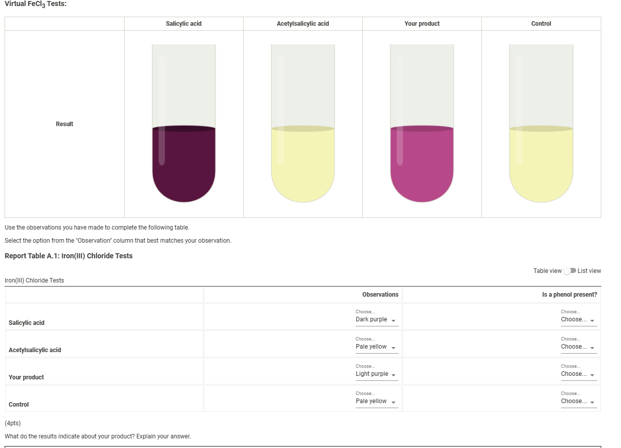 Solved Virtual FeCl3 Tests Use the observations you have - Separately test each of the following in a test tube, with 1 ml of ethanol and 3 drops of 0.02 m aq. Aspirin that has been stored for a long time may give a. The ferric chloride test is a qualitative analysis method used to determine the presence of phenolic compounds, specifically salicylic acid, in a sample. The starch test. You should also read this: Road Test In Yonkers