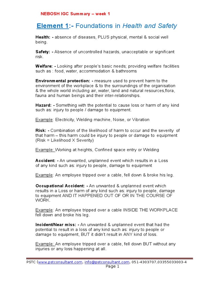 Element 1Foundations in Health and Safety NEBOSH IGC Summary Week - Blood, blood components, semen, vaginal secretions, cerebral spinal fluid, salivia, and mucus. The right of workers to seek safety and health on the job without fear of punishment is. It addresses topics like who has the most impact on safety, when guards can be removed from equipment,. Explore quizzes and practice tests created by teachers and students or. Occupational safety. You should also read this: Pap Smear Test Pain