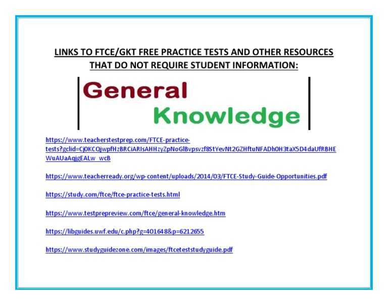 5 FullLength FTCE General Knowledge Math Practice Tests The Practice - To ensure teacher competency and effectiveness, the bureau of educator certification tests and certifies all prospective teachers. Aligned to current 2025 exam. Mastering this principle will turbocharge your. Free online ftce general knowledge practice test. So, if one is thinking of. You should also read this: Elbow Valgus Stress Test