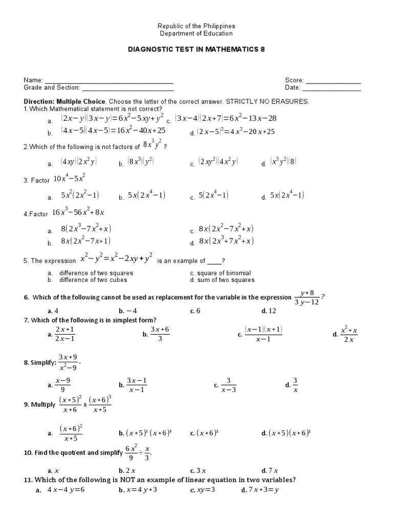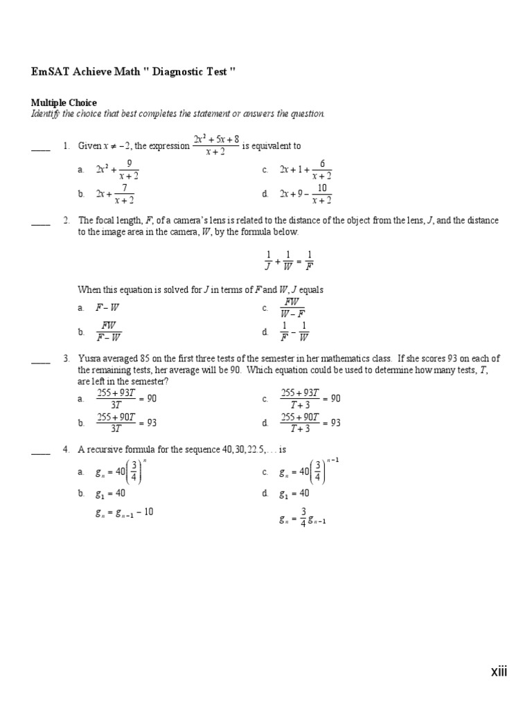 Emsat Achieve Math " Diagnostic Test " Multiple Choice PDF - Ace this school year40+ years of experienceexpert teachersflexible scheduling The test is designed for students who have. Take the varsity learning tools free diagnostic test for intermediate geometry to determine which academic concepts you understand and which ones require your ongoing attention. For intervention, direct students to the following pages from the skills. Each test is tagged with the core. You should also read this: Test 1700 Gnc
