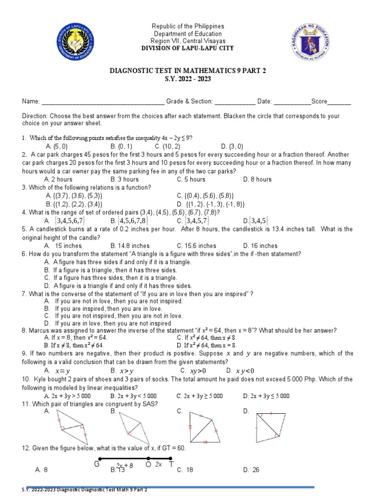 GRADE 9 DIAGNOSTIC TEST IN MATH PART 2 Final PDF Geometry - Quiz yourself with questions and answers for geometry diagnostic exam, so you can be ready for test day. Each test is tagged with the core concepts and has detailed. Whether you are studying for a school exam or just looking to challenge your geometry skills, this test will help you assess your. Take the varsity learning tools free diagnostic test. You should also read this: Can Spironolactone Cause A False Positive Drug Test