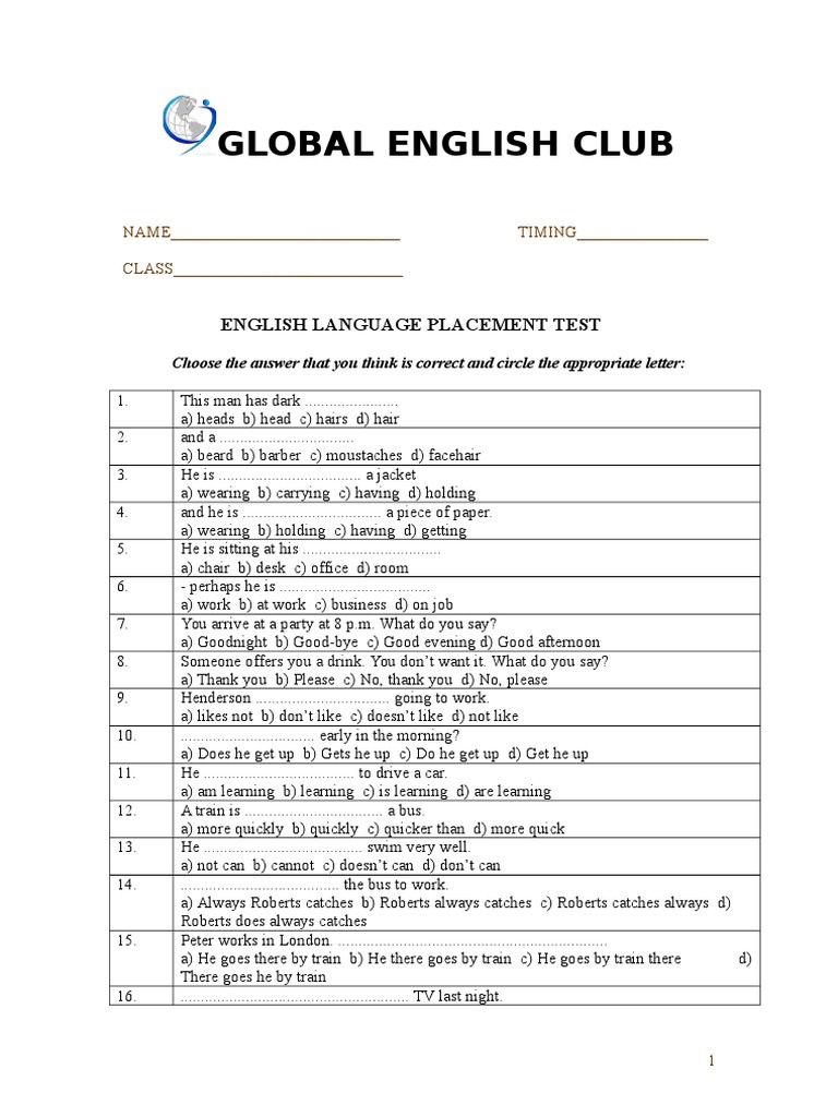 Global English Club English Language Placement Test PDF - The language placement test is a tool to assess students’ language skills so they begin language study at the appropriate college level. You can place out with a 4 on the ap spanish exam. The placement test isn’t a test. Hey so i’m an incoming freshman who needs to take the spanish placement test. It takes approximately 30 minutes. You should also read this: How To Test For Pots