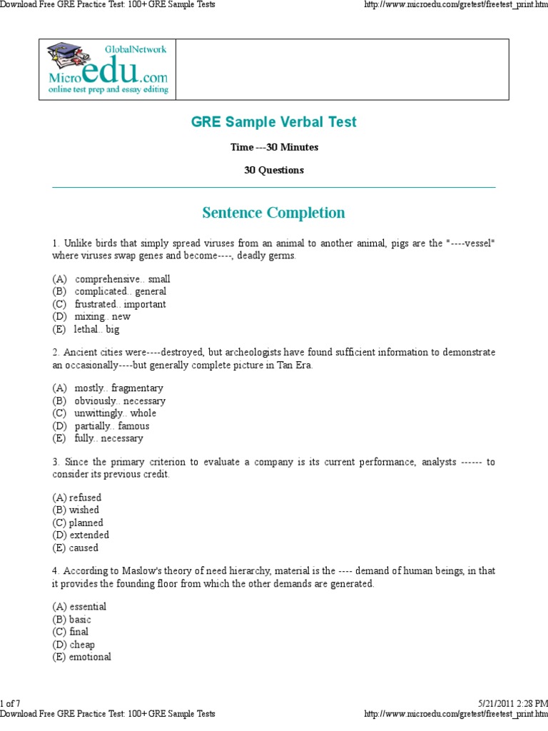 Printable Gre Practice Test - Before investing in an expensive course or home study program, we recommend that you start with some free gre resources that will help you pinpoint your strengths,. This unscored simulation test contains 10 verbal questions and 10 quantitative questions only, all within a single, timed section. 72 gre verbal reasoning practice questions questions 3 and 4 are based on the. You should also read this: Voges Proskauer Test
