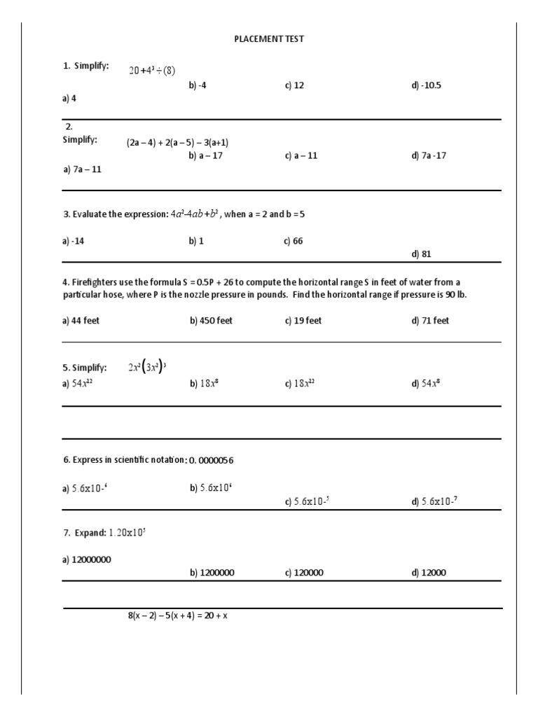 College Math Placement Test PDF - Depending on their background and interests, students may enter the study of mathematics at different points. As demonstrated above, grinnell seems to be placing students in math phd programs at an equivalent rate to carleton. [ 20 ] 208 is code for take mat 131 (calculus i) and then take mat 209 (applied statistics). Generally, the placement process involves these. You should also read this: Emissions Testing Racine