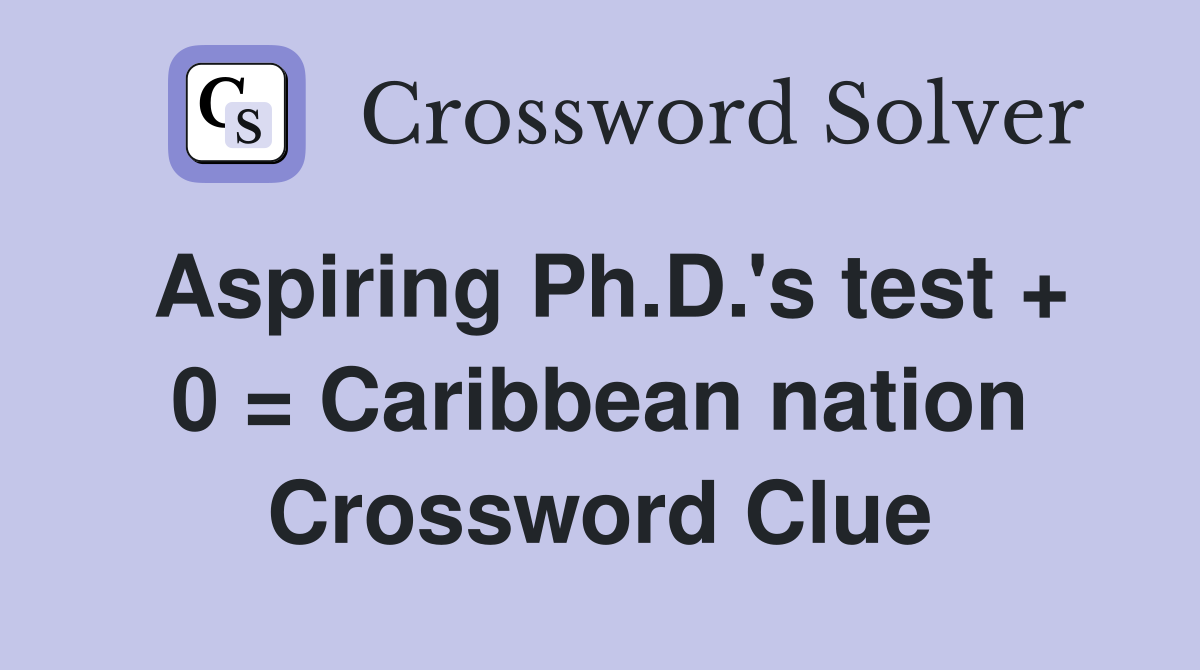 Aspiring Ph.D.'s test + 0 = Caribbean nation Crossword Clue Answers - While searching our database we found 1 possible solution for the: We have found 1 possible solution matching: All crossword answers with 6 letters for __ test: Here is the answer for the: The possible answer is base. You should also read this: Bmv Signs Practice Test