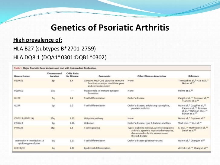 PPT Psoriatic arthritis PowerPoint Presentation ID485526 - People may need multiple medical tests, including blood tests and imaging scans, to help diagnose psoriatic arthritis and show how the condition is progressing. More than half of people who have psoriatic arthritis with spine inflammation will have this genetic marker. Rea belongs to the group of seronegative inflammatory spondyloarthropathies commonly associated with the human leukocyte antigen b27 (hla. Most. You should also read this: Mississippi Foundations Of Reading Test